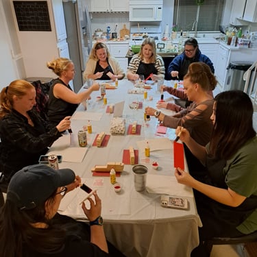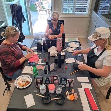 At Crafting Parties & Classes we take the stress out of having a craft night. We help you select a craft, prepare the materials, and an instructor will come to your party to lead your guests through the crafting process. It's easy-peasy.